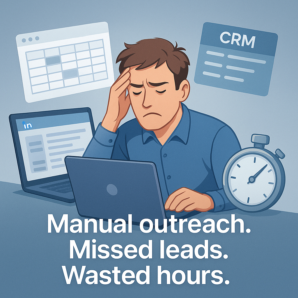 • Manual LinkedIn outreach was slow, inconsistent, and error-prone, leading to missed prospects and weak follow-up.